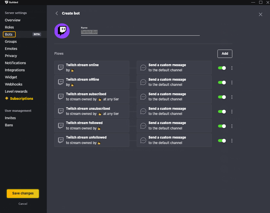 Cloudbot’s versatility shines in its ability to work seamlessly across multiple streaming platforms. Mainly optimized for Twitch, it also extends support to YouTube, Facebook Gaming, Trovo, and even historically supported platforms like Mixer before its sunset.