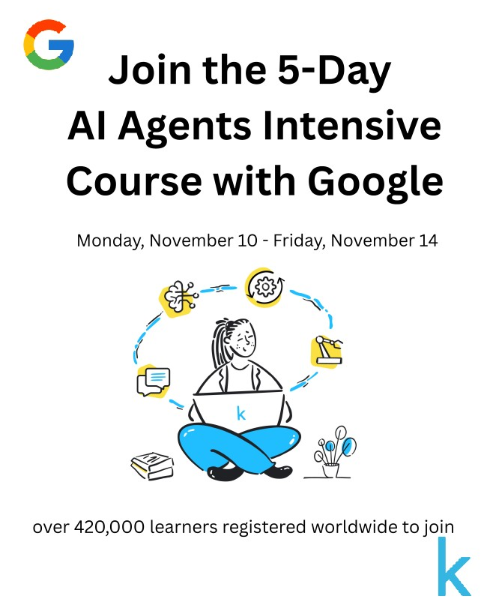 - Google is launching a **free 5-Day AI Agent Intensive Course** from November 10th to 14th, 2025.